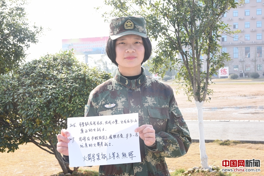火箭军某旅上等兵:2016年军营教会我成长,给我力量,让我成为一名真正的战士。