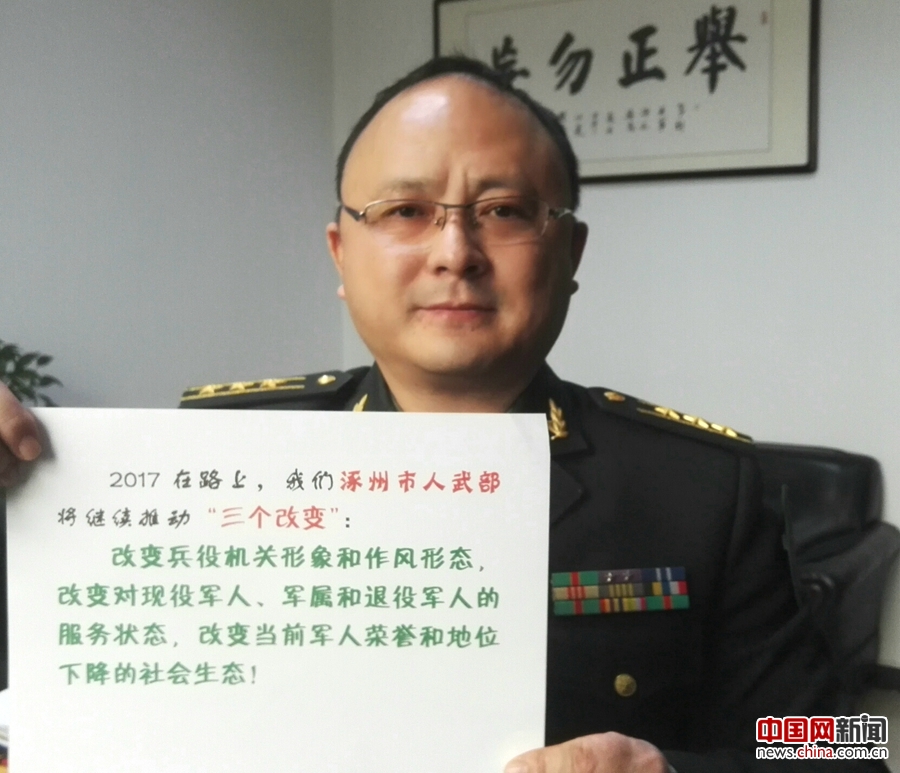 河北省涿州市人武部政委杨鸿寄语“三个改变”。