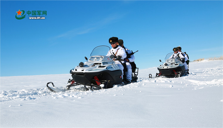 乘坐摩托雪橇巡逻。郭发海乔玉中摄