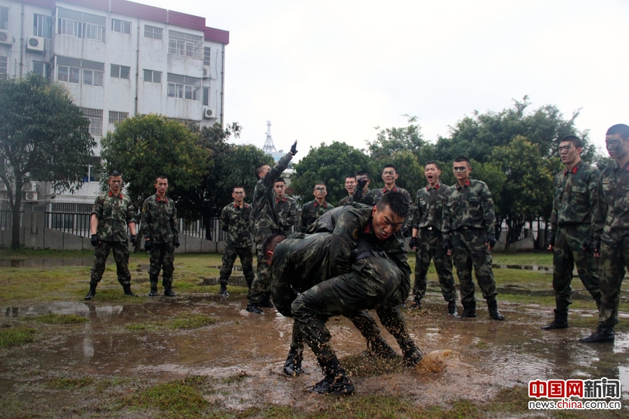 酷!武警泥潭中抱原木进行仰卧起坐训练