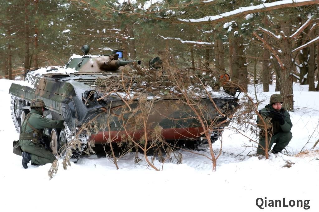 02.波兰士兵为BMP-1步兵战车进行伪装。