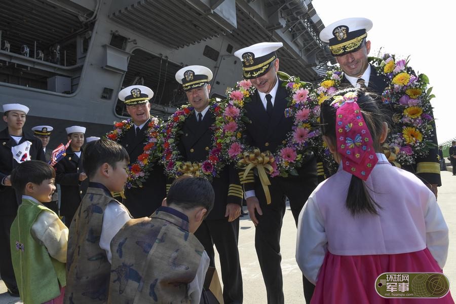 据美国海军网最新发布的照片,3月15日美国海军卡尔文森号航空母舰抵达韩国釜山,航母上水兵在驶入港口时站坡致敬。