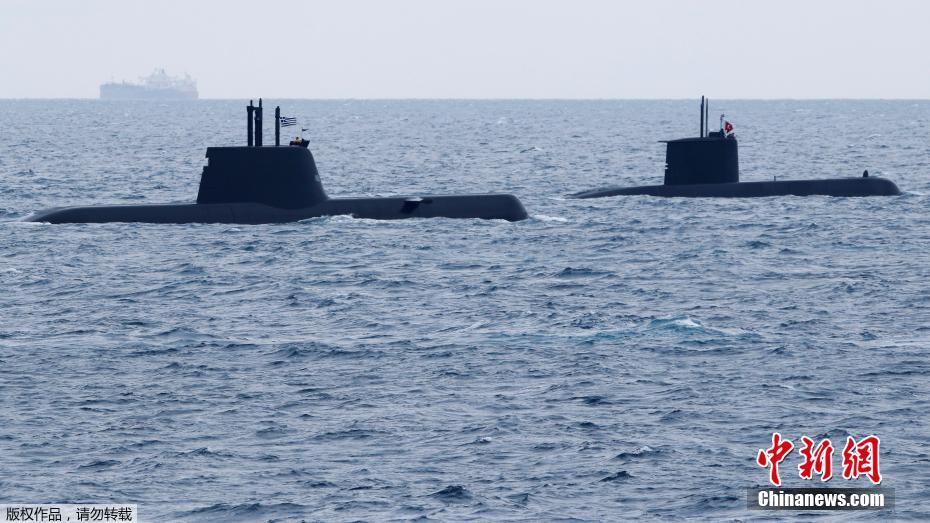 当地时间3月13日,北约在意大利卡塔尼亚海域举行代号为“Dynamic Manta 2017”海军反潜联合演习。图为参加反潜联合演习的潜艇在水中游曳。