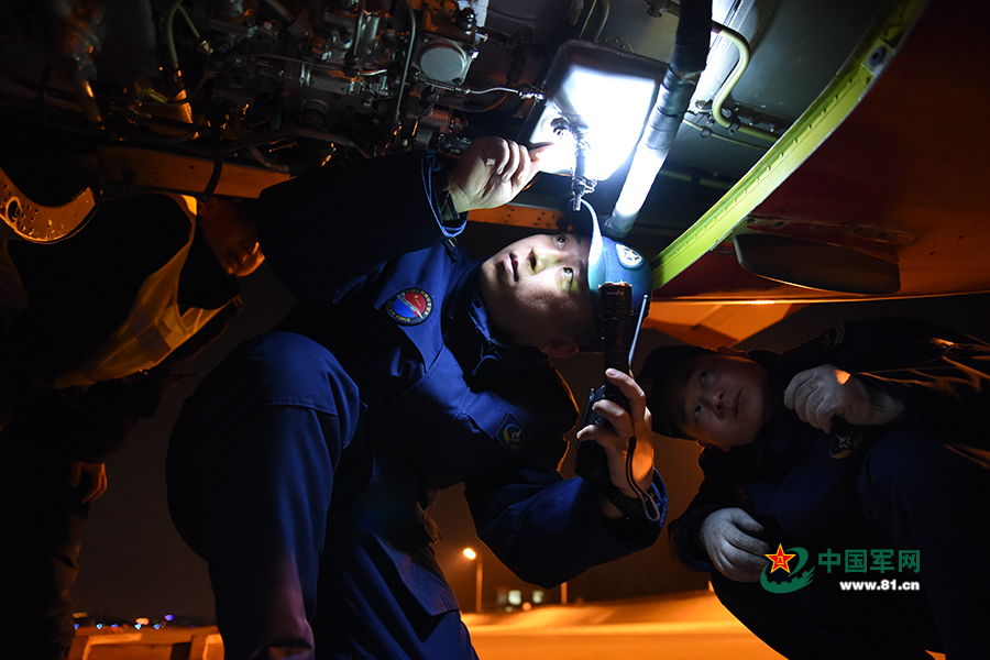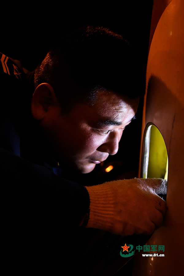 机务将士实可谓停机坪上最繁忙的工匠,他们以平凡之力托举千钧重任,用汗水冲刷出放飞雄鹰的坦途。昏暗的机翼下,机务大队长孙晓光俯下身子,对战鹰“望闻问切”,眼神随着电筒的灯光,一遍又一遍地检查着飞机的每一个部件。