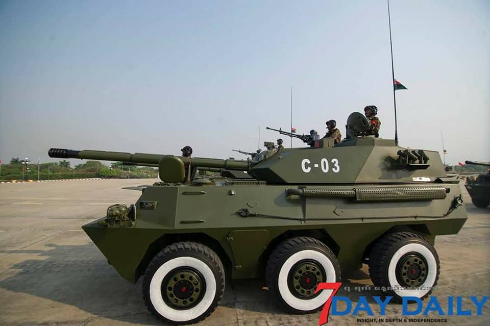缅甸阅兵式上几乎全是中式装备,图为中国制造的WZ551轮式装甲车。