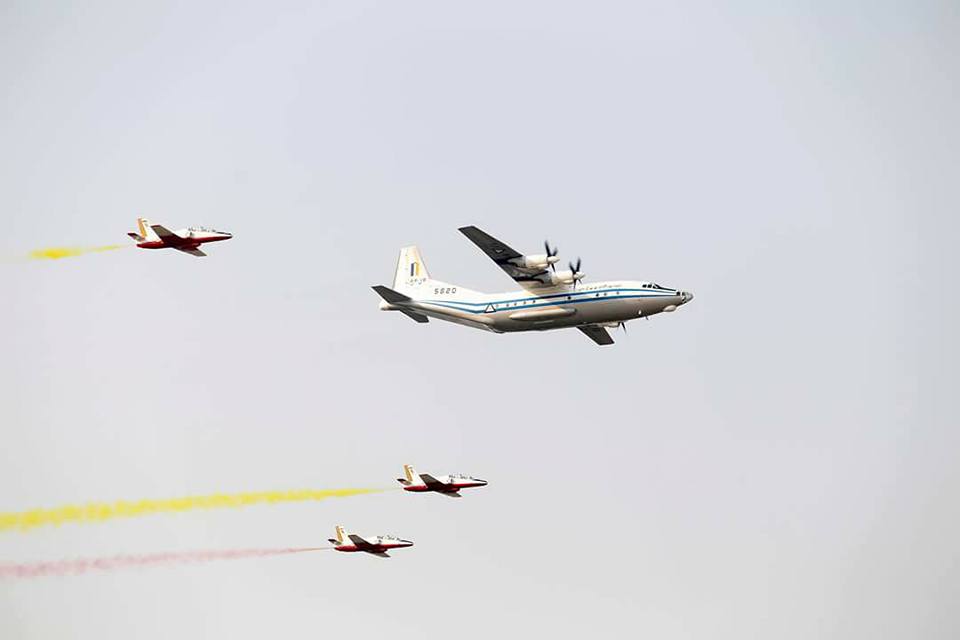 缅甸阅兵式上几乎全是中式装备,图为面点装备的运8运输机和K8教练机编队。