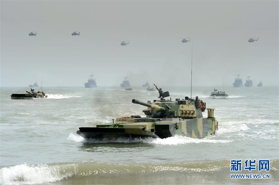 中部战区陆军某部在福建某地组织合成步兵营登陆战术检验演练(2016年5月13日摄)。新华社发(段红伟 摄)