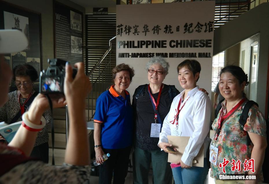 5月19日,菲律宾华支退伍军人总会、华支后裔联谊会举办活动,隆重纪念菲律宾华侨抗日游击支队(简称“华支”)建军75周年。图为从中国赶来参加纪念活动的菲律宾归侨代表在菲律宾华侨抗日纪念馆内合影留念。1942年5月19日,菲律宾华侨组成抗日游击支队,与当地人民一道抗击日本侵略者。中新社记者 张明 摄