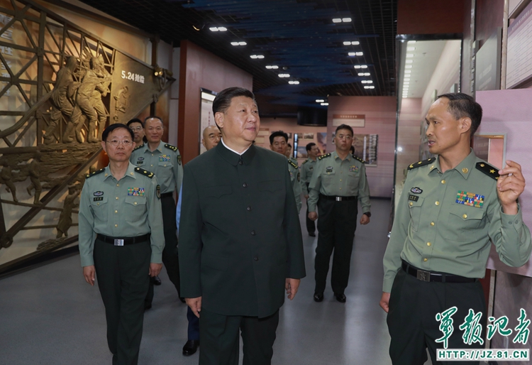6月22日,正在山西省考察工作的中共中央总书记、国家主席、中央军委主席习近平,到驻晋部队某基地视察调研,代表党中央和中央军委,向基地组建50周年致以热烈祝贺,向老一辈创业者、广大基地官兵致以崇高的敬意和诚挚的问候。这是习近平视察基地军史馆。记者 周朝荣摄