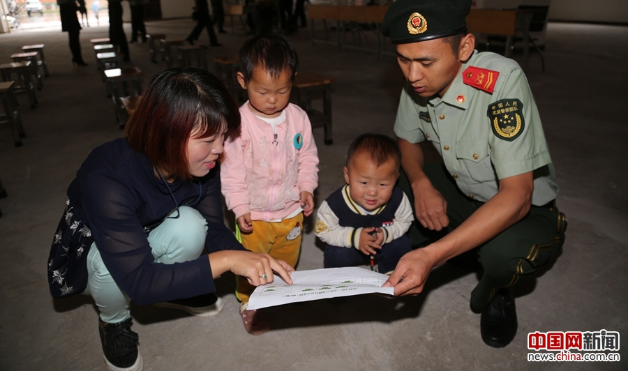 士官范俊青带着妻子和龙凤胎儿女到现场选房。