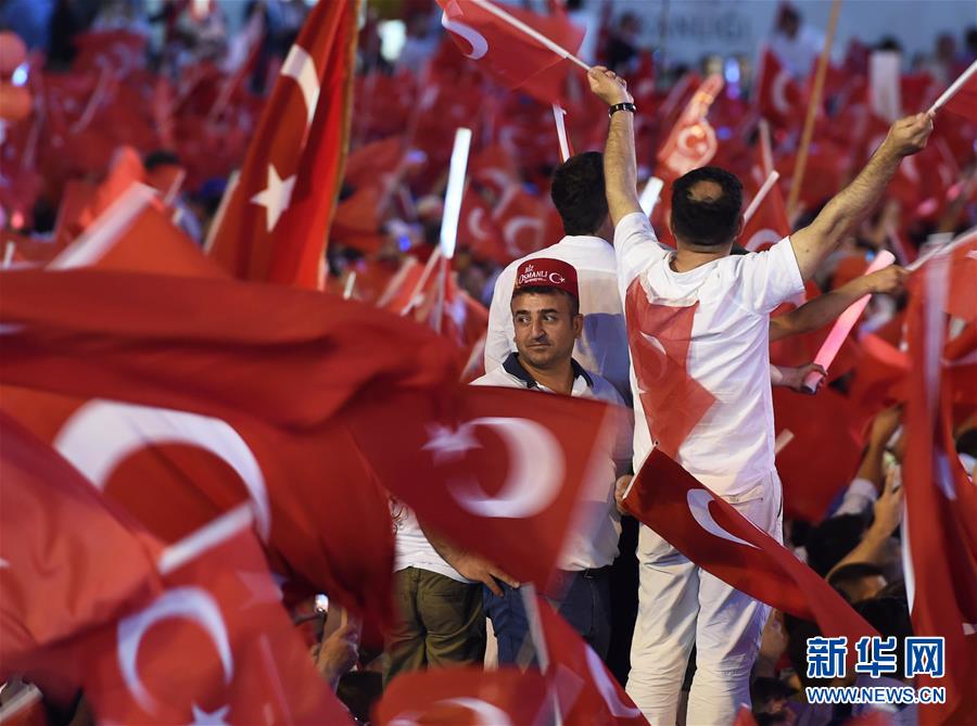 7月15日,在土耳其伊斯坦布尔,民众参加未遂军事政变一周年集会活动。