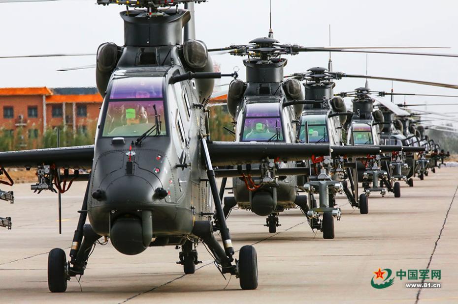 武装直升机群准备升空。吴世科 摄 图片来源:中国军网