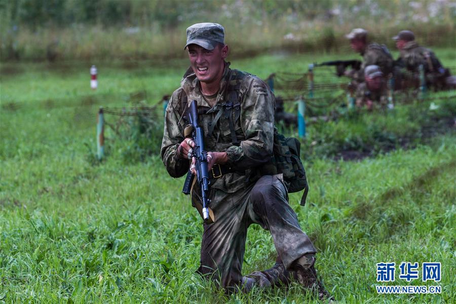 8月2日,在俄罗斯新西伯利亚,俄罗斯队队员参加“侦察尖兵”第三阶段比赛。