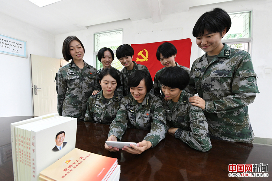 中国网军事10月19日讯(通讯员 赖桥泉)观盛会,欢声笑语;听报告,豪情满怀。2017年10月18日,东部战区陆军某旅通信执勤营话务连部分执勤官兵一下机台,便赶紧取出手机收听收看十九大开幕盛况。