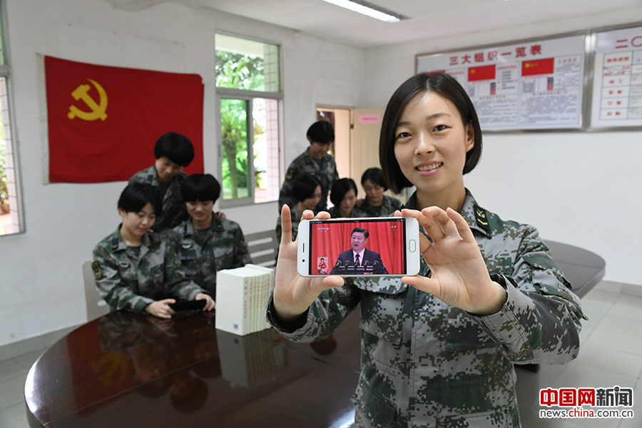 “报告振奋人心,使命催人奋进,我们要更加坚定自觉地听党话、跟党走……”2017年10月18日,东部战区陆军某旅通信执勤营话务连官兵收听收看十九大开幕盛况后激动不已。