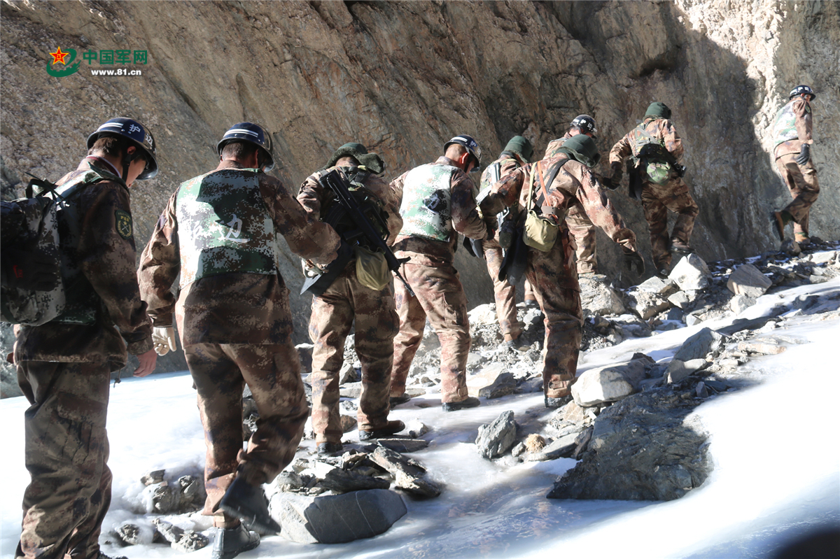 冒着寒风在断崖和冰层上巡逻 @边防官兵