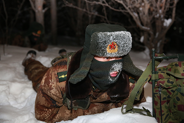 即使是在气温最低的凌晨时分,哨所官兵仍然坚守在哨位,在雪窝中一趴就是两个小时。新华社记者丁鹏 摄