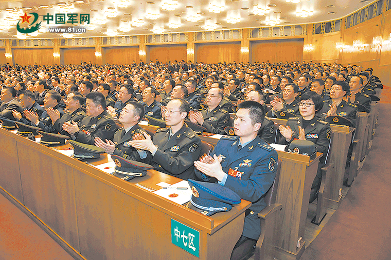 3月11日下午,十三届全国人大一次会议举行第三次全体会议,经投票表决通过了《中华人民共和国宪法修正案》。图为军队人大代表热烈鼓掌。解放军报记者 冯凯旋摄