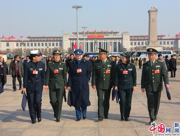 尹璐(左二)参加中国人民政治协商会议第十三届全国委员会第一次会议。