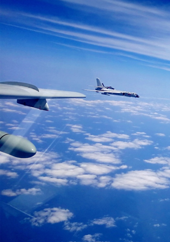 4月19日,中国空军轰-6K等多型战机执行“绕岛巡航”任务。秦军 摄