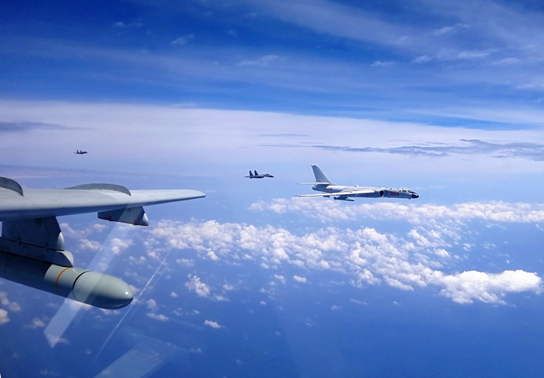 4月19日,中国空军轰-6K等多型战机执行“绕岛巡航”任务。翟培松 摄