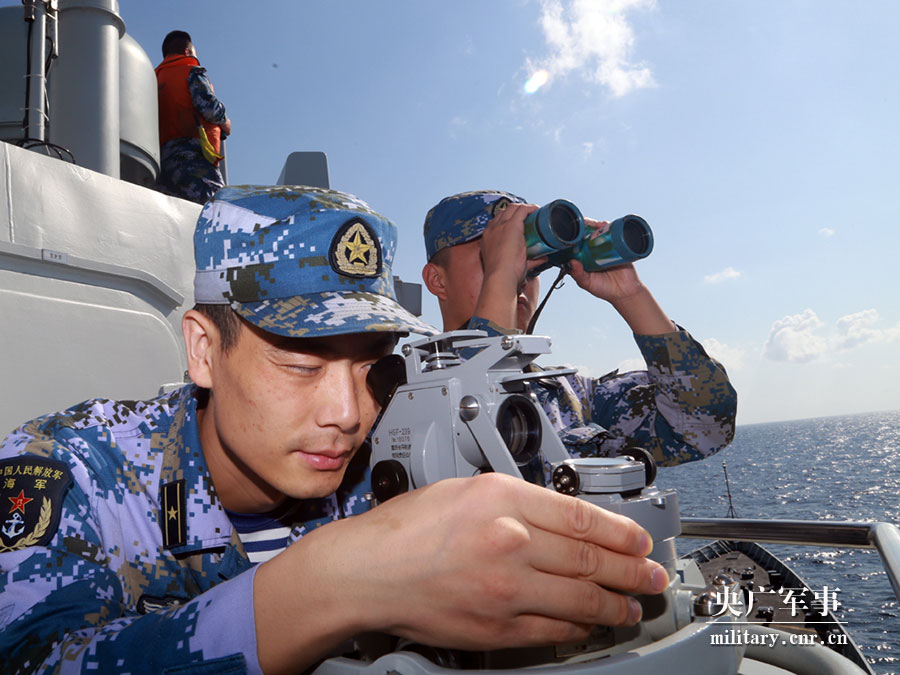 官兵们观察海面,寻找落水人员。曾行贱 摄