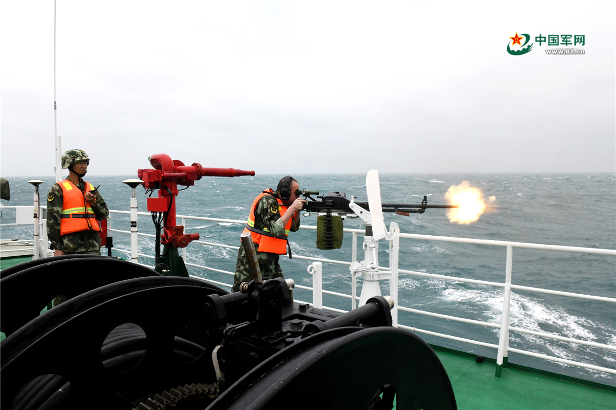 海警官兵组织开展12.7毫米机枪射击。