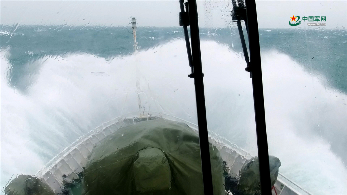 海警舰艇大风浪航行。