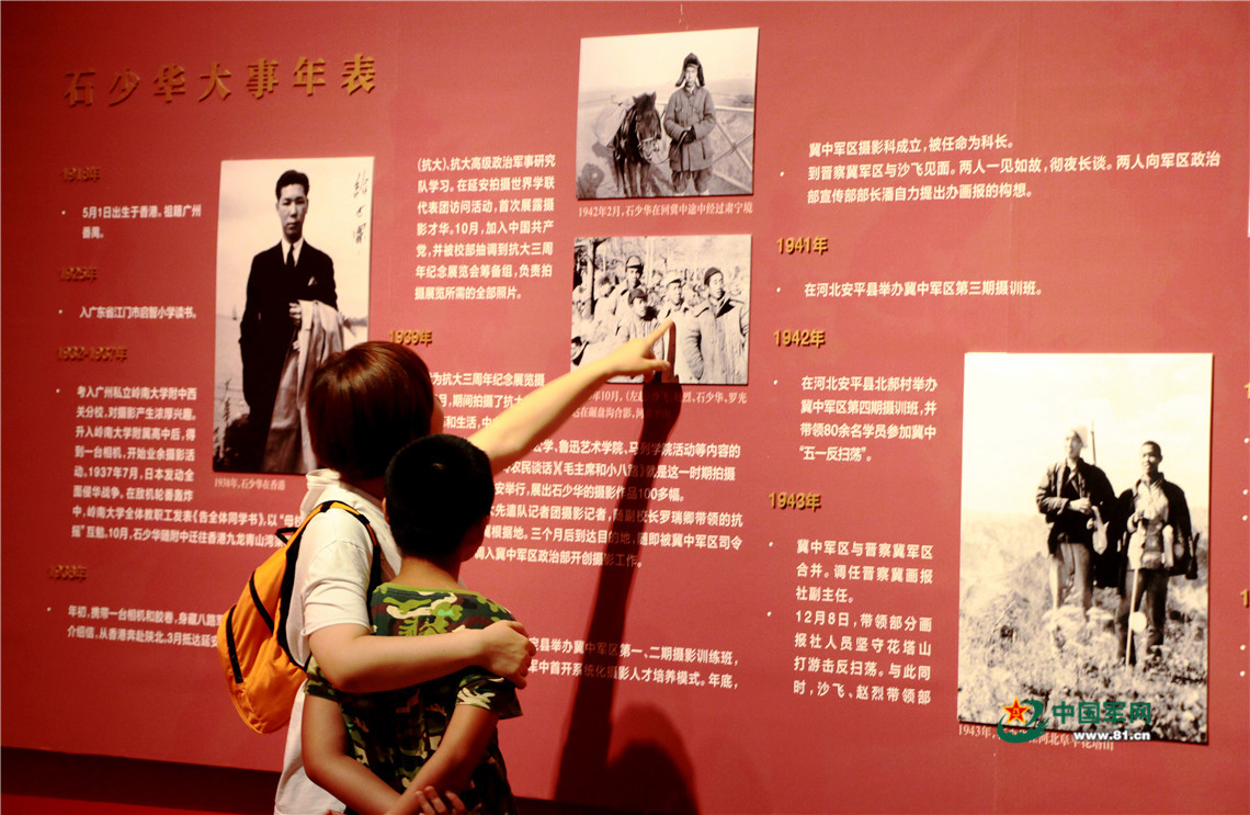 9月1日,《韶影华章——石少华摄影回顾展》展览大厅,观众驻足观看作品。中国军网记者孙智英 摄