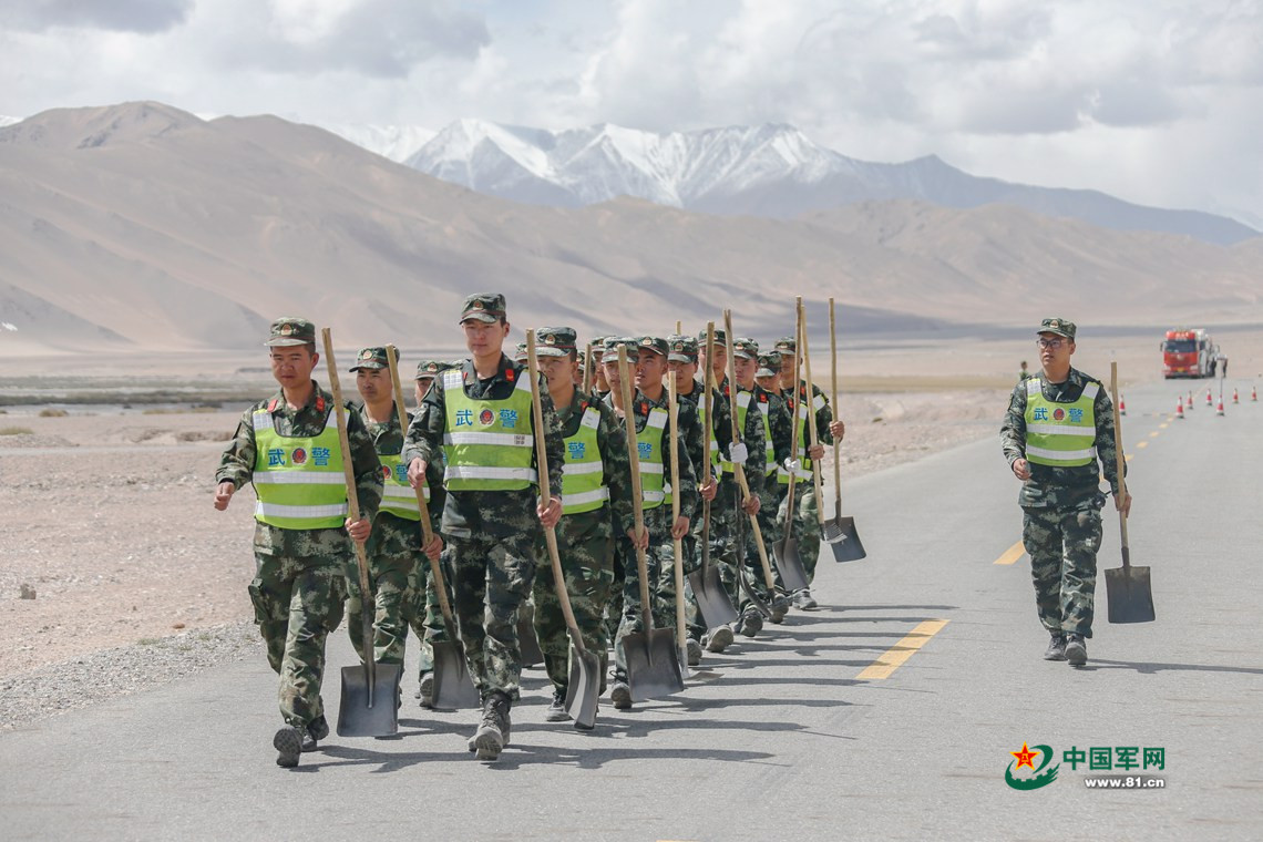 9月12日,该支队官兵在海拔近4500米的养护一线施工作业。