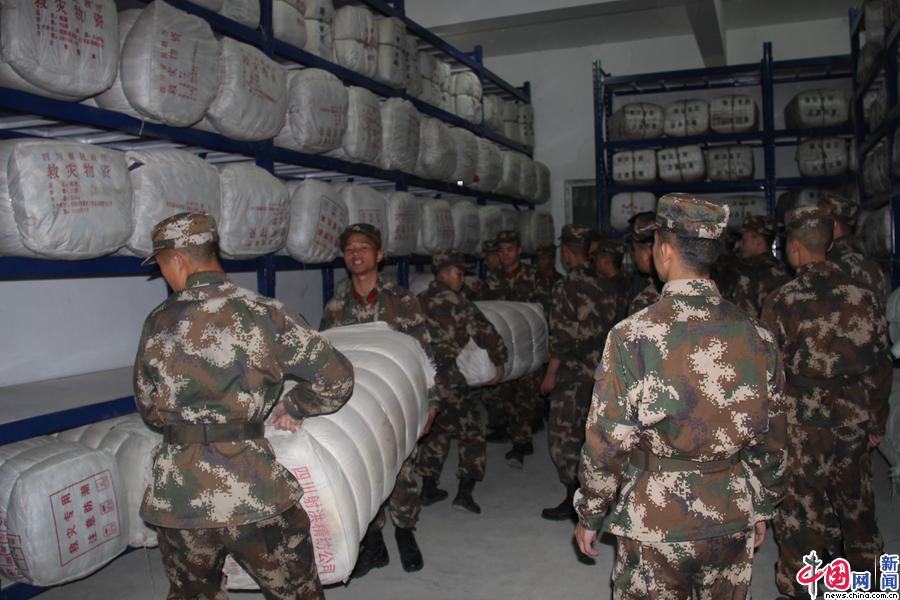 13日上午,白玉县民政局救灾中心收到了第一批从外地运来的救灾物资,包括2000床棉被、600顶帐篷和200床毛毯。武警白玉中队40名官兵闻讯而动,立即前往帮助搬运物资,至当日14时所有物资全部卸载完毕。