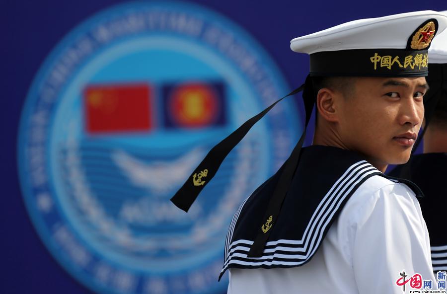 10月22日上午,中国-东盟“海上联演-2018”演习开幕式在湛江某军港举行,各参演国观察员与参演官兵代表参加开幕式。 张雷 摄