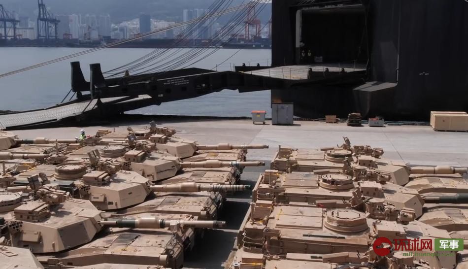 美军“钢铁洪流”抵韩国 坦克密密麻麻摆满码头
