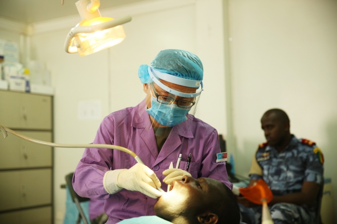 这是2016年6月15日,在马里加奥的联合国马里稳定团中国二级医院,中国维和医疗队员为患者治疗。新华社发(赵子权摄)