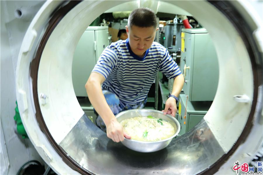 一大盆“油菜鸡蛋肉丝面”送到战位上,味道鲜美,可比“舌尖上的龙宫”。