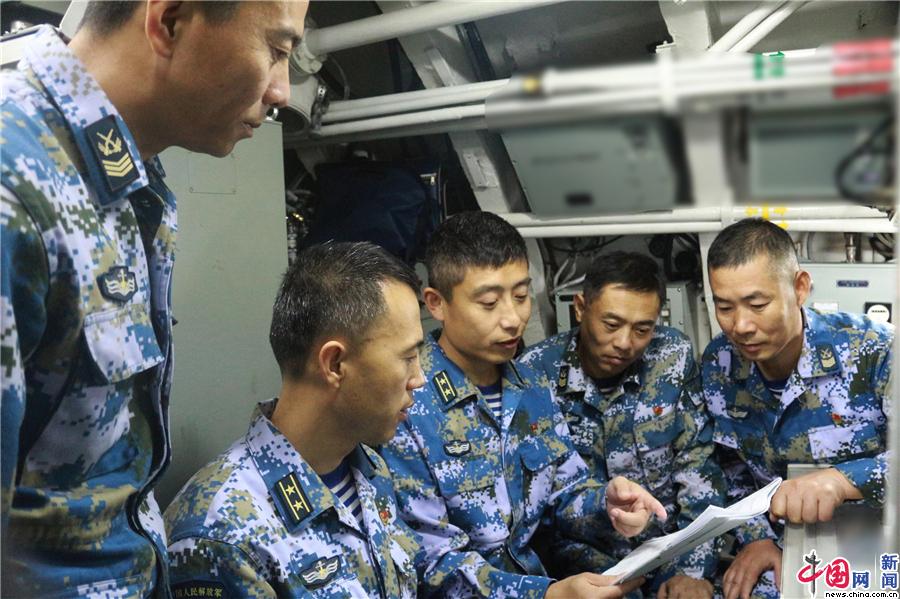 艇长政委与高级士官交流。