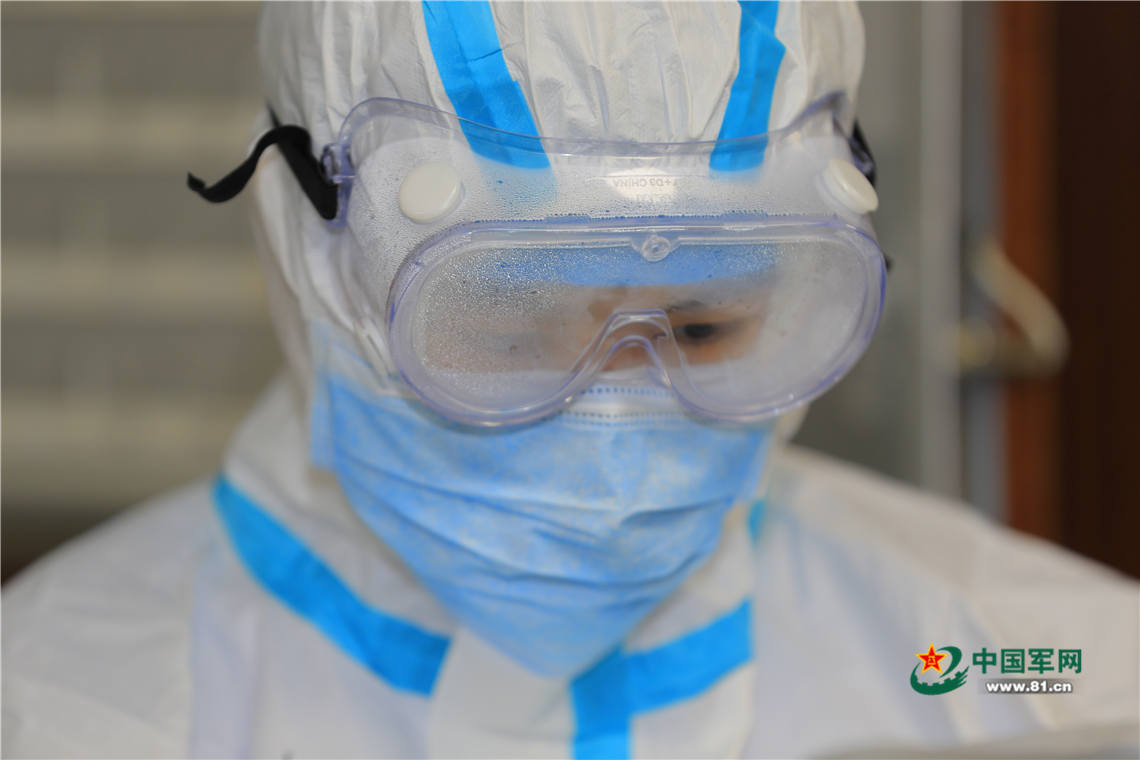 护目镜里的水汽,虽然模糊了护士的视线,但丝毫没有影响到她们做好护理工作。王皓宇 摄