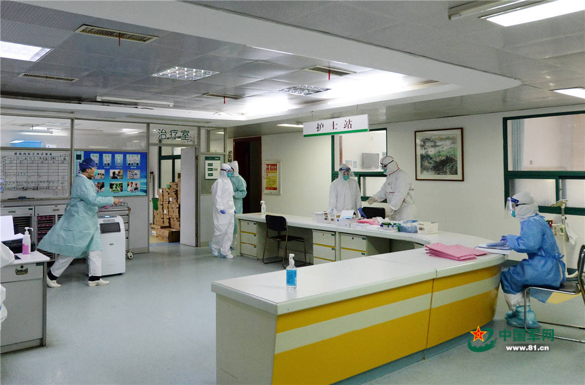 病区里忙碌的身影,诠释了医护人员勇挑重担、敢打硬战和不怕疲劳连续作战的优良作风。解放军报记者王传顺 摄