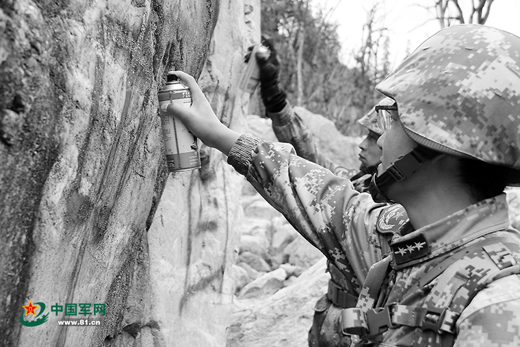 路的尽头,他们描红“中国”二字。图片由米古边防营5连官兵提供