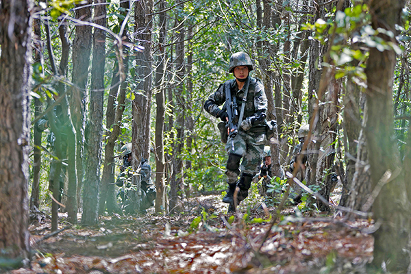 陆军第71集团军某旅“王杰班”在皖东腹地进行野外搜寻训练(2018年9月5日摄)。新华社发(李志浩 摄)