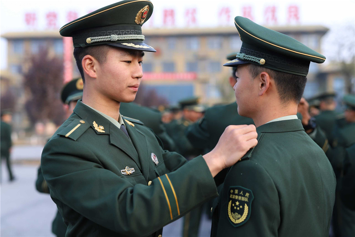 新训班长为新学员授衔