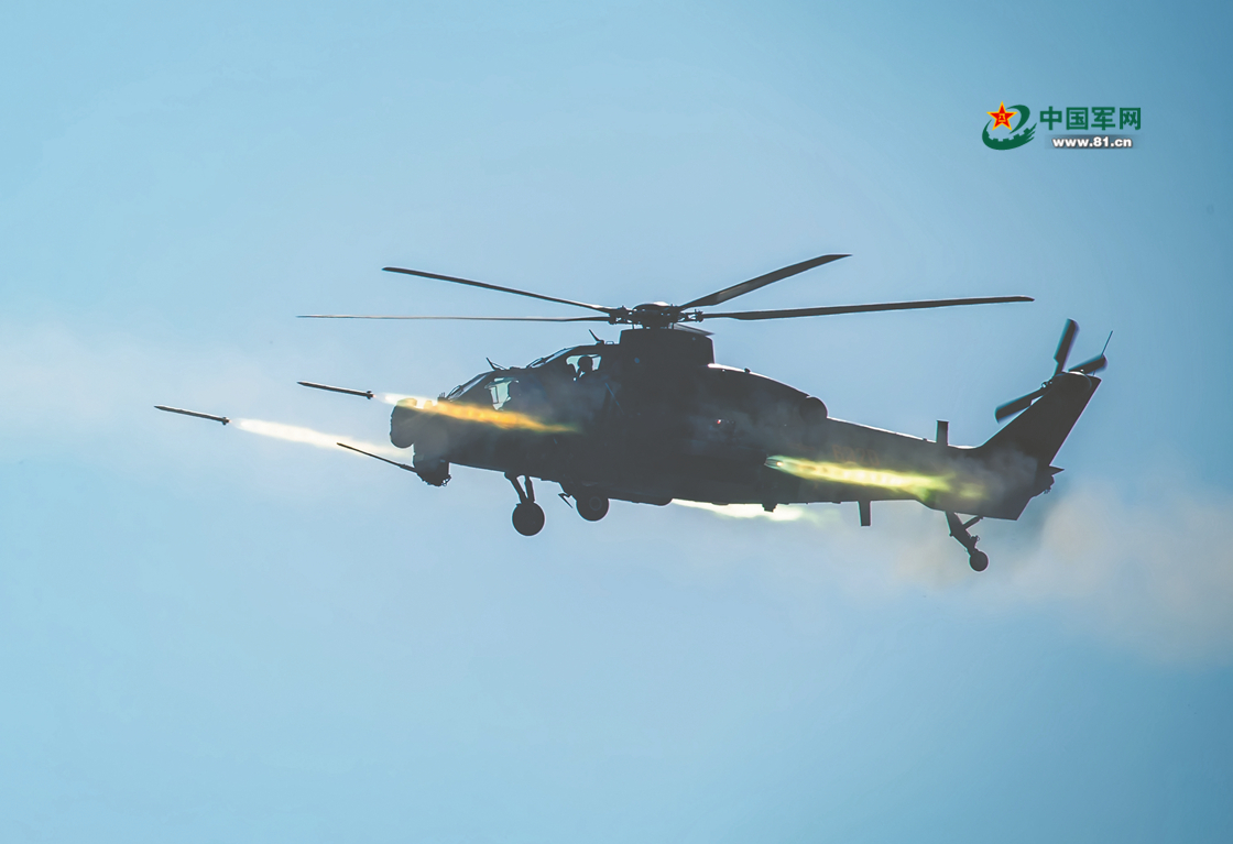 武装直升机火力突击。