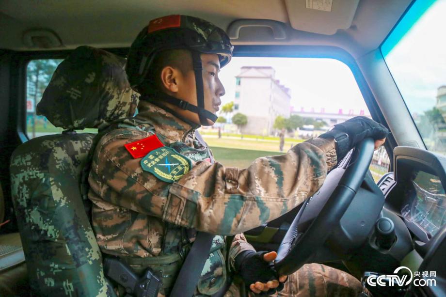 图为特战队员进行场地驾驶考核。