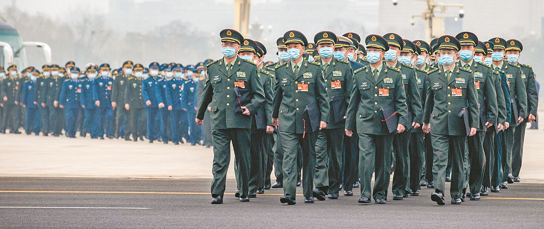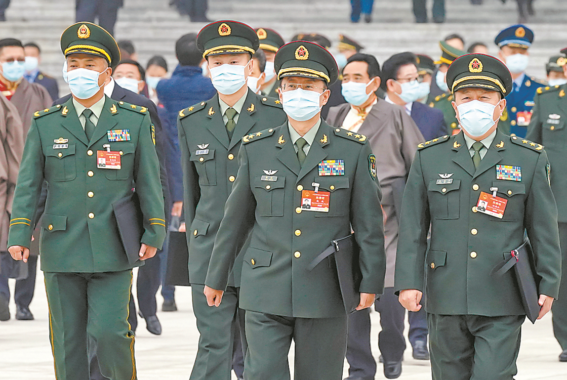 3月5日,十三届全国人大四次会议在北京人民大会堂开幕。图为会议结束后,军队人大代表走出会场。伊 霄摄