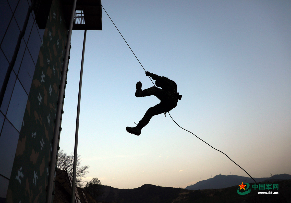 特战队员开展高空索降训练。李结义摄