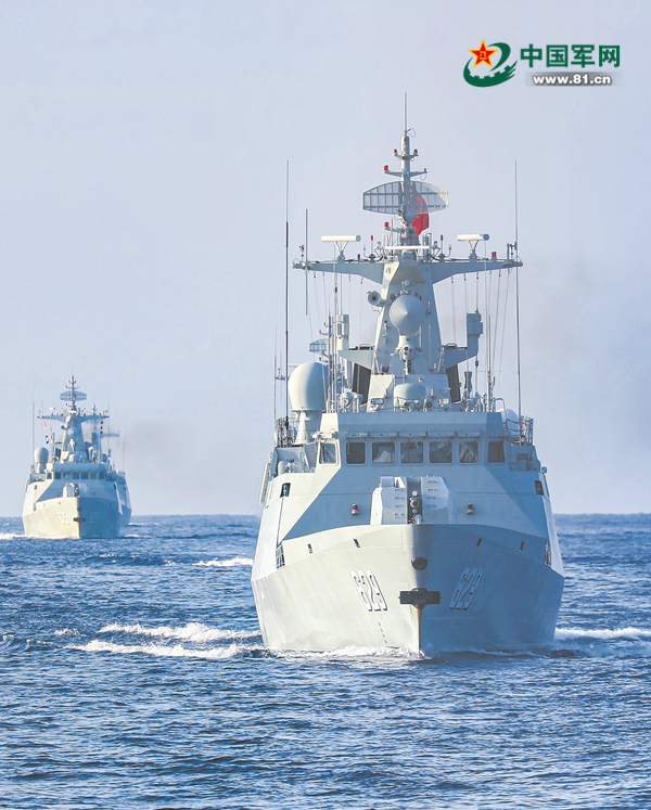 舰艇编队驶向训练海域。
