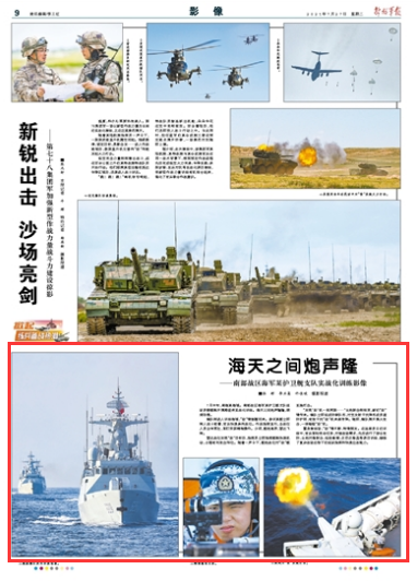 7月中旬,南海某海域。南部战区海军某护卫舰支队组织多艘舰艇开展跨昼夜实战化训练。海天之间炮声隆隆,硝烟弥漫。