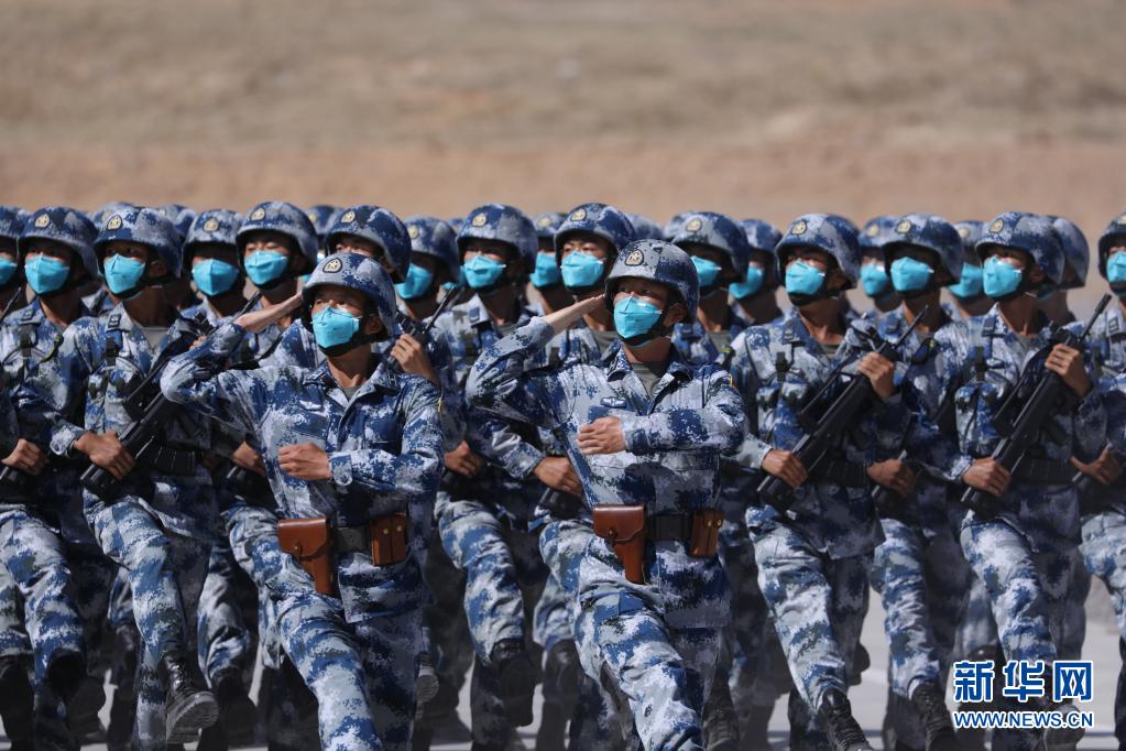 8月9日在“西部·联合-2021”演习开始仪式分列式上拍摄的空军作战部队方队。“西部·联合-2021”演习9日上午在宁夏某合同战术训练基地正式拉开帷幕。新华社记者 刘芳 摄