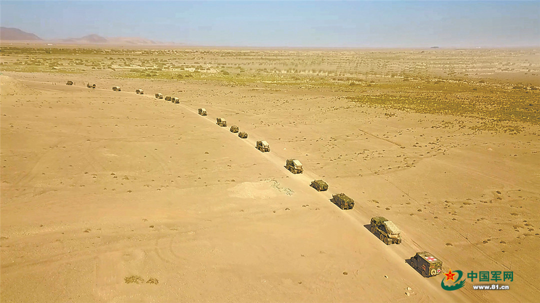 编队挺进大漠戈壁腹地。