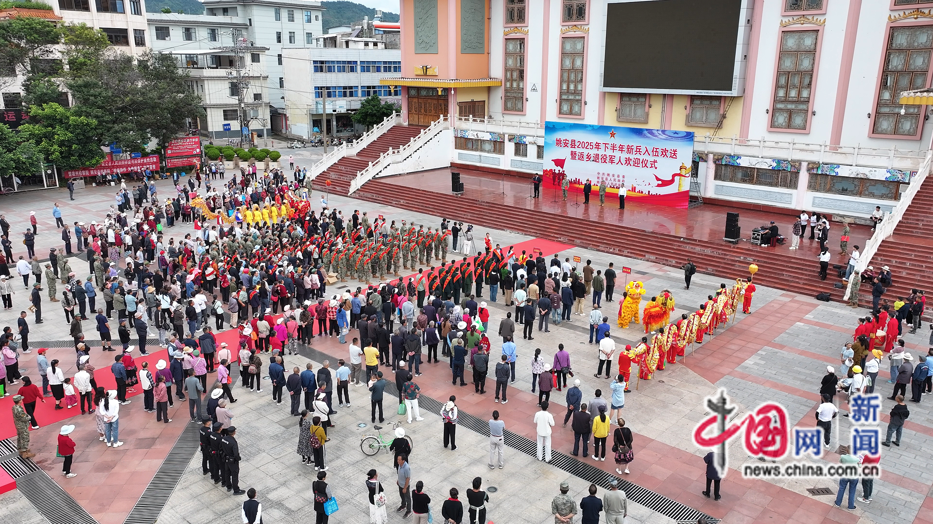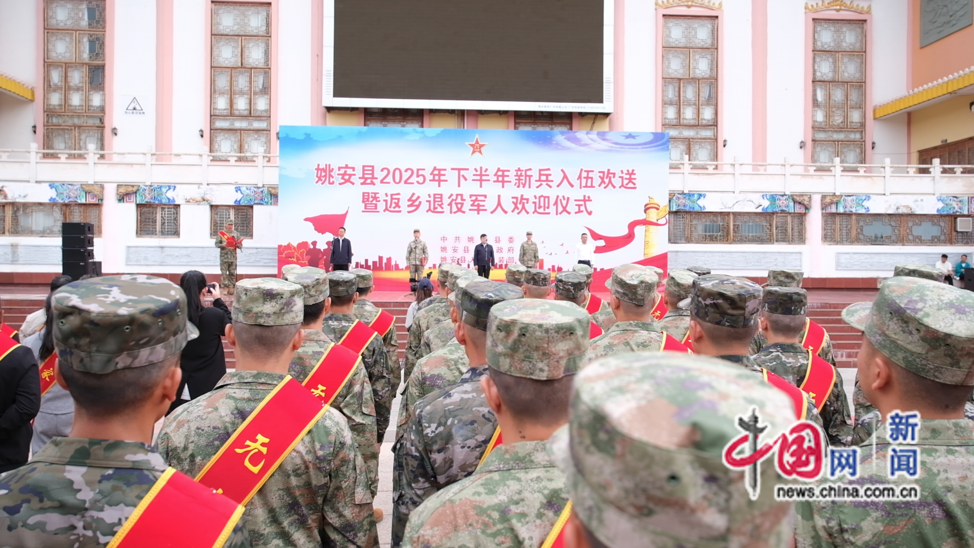 中国网军事9月16日讯(通讯员赵岩 胥小刚 李芹 龙楠 鲁曼青 李汪洋)旌旗猎猎,军乐铿锵。近日,2025年下半年新兵入伍欢送暨返乡退役军人欢迎仪式在姚安县梅葛广场举行。身着崭新戎装的新兵精神抖擞列队集结,身披绶带、胸戴红花,带着家人的殷切期盼即将踏上从军报国新征程。